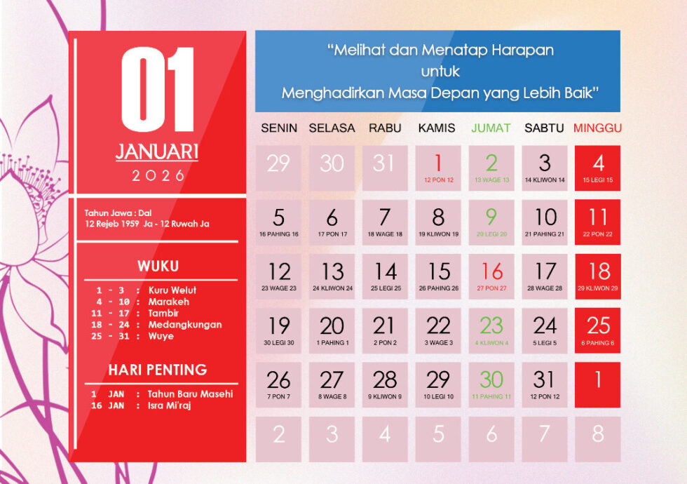 Demikian daftar Hari Libur dan Hari Besar Nasional dan Internasional serta Wuku Bulan Januari 2026.