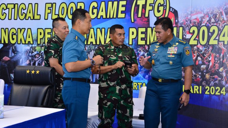 “Pada hari ini kita melaksanakan tactical floor game dalam pengamanan Pemilu 2024, kita semua berharap para prajurit TNI Angkatan Laut di lapangan dapat mengetahui tugas pokok dan fungsinya, sehingga tidak ada keragu-raguan di lapangan. Dalam upaya untuk memastikan kelancaran pelaksanaan pengamanan Pemilu, maka laksanakan pengamanan Pemilu sesuai dengan Standar Operasional Prosedur (SOP) serta peraturan pelibatan yang berlaku.” Pesan Kasal kepada seluruh peserta TFG yang terlibat.
