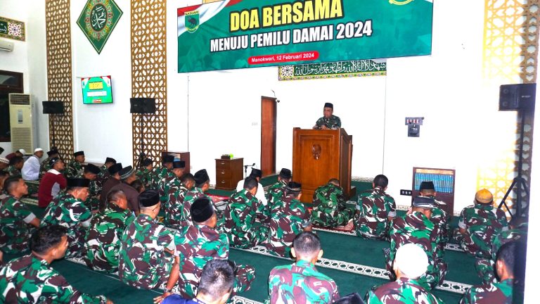 Cakra101, Manokwari.- Dalam rangka memohon Kehadirat Allah SWT agar diberikan kesehatan, kekuatan dan kemampuan dalam menjalankan tugas pengamanan Pemilu dengan baik, selain untuk kelancaran dalam Pemilu Damai 2024 mendatang, Kodam XVIII/Kasuari menggelar Do’a bersama dengan Lintas Agama yang dilaksanakan serentak di tiga titik tempat Ibadah diantaranya Masjid Istiqlal, Gereja Ebenhaizer dan Pura Ksatria Shanti Bhuana, kompleks Makodam XVIII/Kasuari, Trikora, Arfai 1, Manokwari, Papua Barat, pada Senin (12/2/2024).