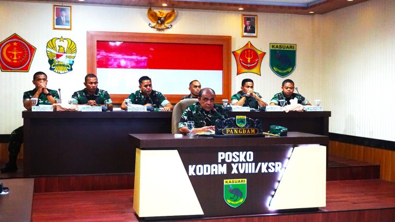 Pernyataan tegas ini disampaikan langsung oleh Pangdam XVIII/Kasuari, Mayjen TNI Ilyas Alamsyah, S.E., M.Tr.(Han)., CGCAE., dalam arahannya saat melaksanakan apel bersama para Komandan Satuan (Dansat) jajaran diwilayah Kodam XVIII/Kasuari yang digelar secara Virtual, di Ruang Posko, Makodam, Trikora, Arfai 1, Manokwari, Papua Barat, pada Selasa (13/2/2024).