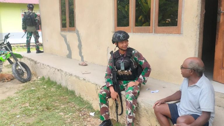 Cakra101, Maybrat.- Mempererat tali silaturahmi dengan warga, Satgas Pamtas Kewilayahan Yonif 623/BWU melaksanakan Komsos sembari melaksanakan Patroli Keamanan di Kampung Aisyo, Kabupaten Maybrat, Papua Barat Daya, Selasa (20/02/2024).