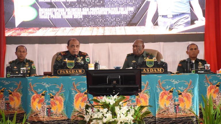 Pernyataan ini disampaikan Pangdam XVIII/Kasuari, Mayjen TNI Ilyas Alamsyah, S.E., M.Tr.(Han)., CGCAE., lewat sambutannya saat membuka acara Rapat Pimpinan (Rapim) Kodam XVIII/Kasuari Tahun Anggaran (TA) 2024, di aula Makodam, Trikora, Arfai 1, Manokwari, Papua Barat, pada Selasa (5/3/2024).