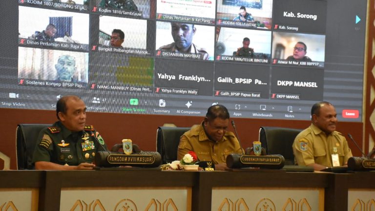 Ikut dalam rakor ini, Aster Kasdam, Sekda Provinsi Papua Barat, dan diikuti secara virtual oleh para Danrem, Dandim dan Bupati se-Provinsi Papua Barat.