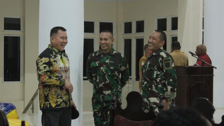 Cakra101, Maybrat.- Dansatgas Pamtas Kewilayahan Yonif 623/BWU Letkol Inf Dimas Yamma Putra di dampingi Perwira Staf Satgas menghadiri buka puasa bersama di Kantor Pemerintah Daerah Kabupaten Maybrat, Distrik Aifat, Provinsi Papua Barat Daya, Selasa (02/04/2024).