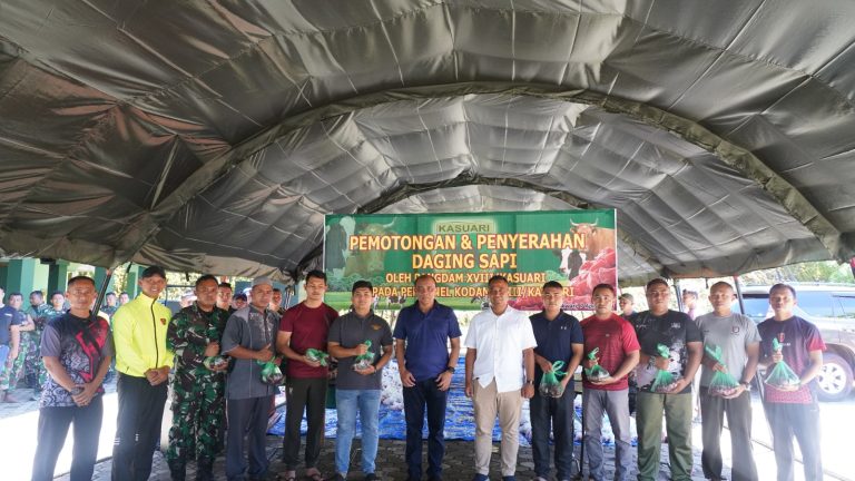 Hal ini dikatakan Pangdam XVIII/Kasuari, Mayjen TNI Ilyas Alamsyah, S.E., M.Tr.(Han)., CGCAE., dalam sambutannya dalam acara pemotongan dan penyerahan daging sapi kepada para prajurit Kodam XVIII/Kasuari yang dilaksanakan di depan Masjid Itiqlal Kodam, Manokwari, Papua Barat, pada Minggu (7/4/2024).