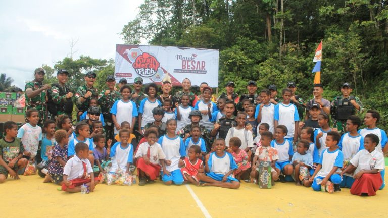 Cakra101, Maybrat.- Bobon Santoso, Content Creator Ternama di Indonesia bersama Satgas Yonif 623/BWU berkolaborasi untuk meningkatkan kualitas hidup Masyarakat Kampung Pancasila Konja dengan kegiatan sosial Masak Besar “Kuali Merah Putih” di Kampung Konja Raya, Distrik Aifat, Kabupaten Maybrat, Provinsi Papua Barat Daya.