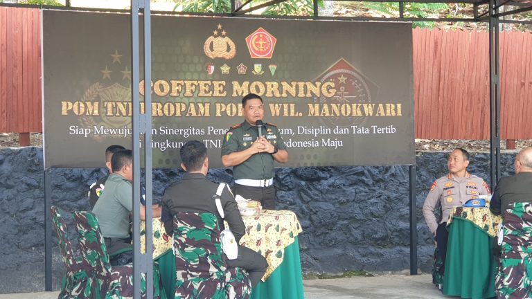 Cakra101, Manokwari.- Pomdam XVIII/Kasuari dan Propam Polda Papua Barat menyelenggarakan acara Coffee Morning bagi komunitas penegak hukum internal institusi TNI-Polri yang ada diwilayah Manokwari, Papua Barat, pada Selasa (14/5/2024).