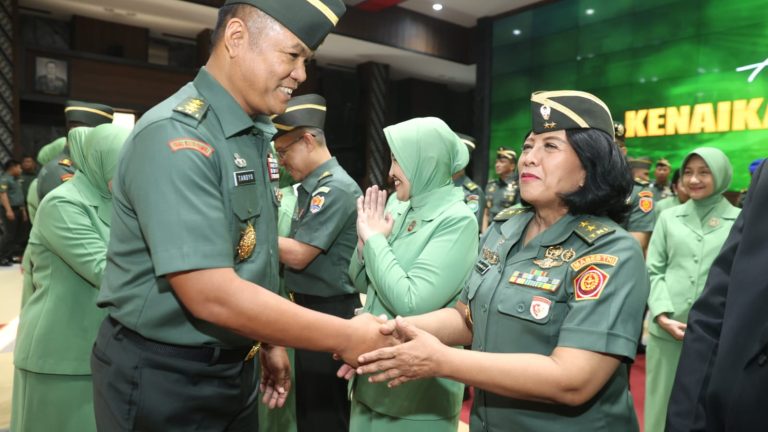 Cakra101, Jakarta.- Wakil Kepala Staf Angkatan Darat (Wakasad) Letjen TNI Tandyo Budi Revita menerima laporan korps kenaikan pangkat 46 Perwira Tinggi (Pati) TNI AD, di Markas Besar Angkatan Darat (Mabesad), Jakarta, Rabu (15/5/2024). Salah satunya, seorang Pati Korps Wanita Angkatan Darat (Kowad) pertama yang menyandang pangkat Mayor Jenderal (Mayjen) di jajaran TNI AD.