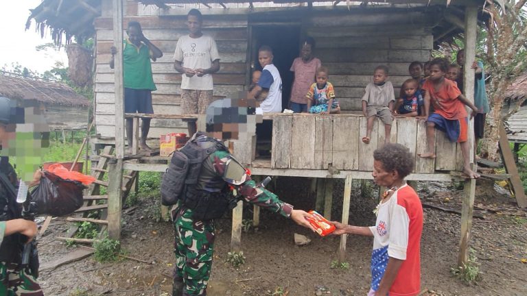 Cakra101, Kampung Pattipi, Yakuhimo.- Dispen Kormar TNI Angkatan Laut (Yahukimo Papua Pegunungan). Satgas Pamtas Mobile RI-PNG melaksanakan pemberian sembako dan pegobatan secara terbatas kepada masyarakat kampung Pattipi, Selasa (21/05/2024).