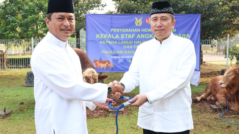 Secara simbolis, hewan kurban diserahkan oleh Kasau kepada Danlanud Halim Perdanakusuma, Marsma TNI Destianto N. Utomo, S.T., M.Han., dan Dandenmabesau, Kolonel Pas Ahmad Sunawar Qodri. Hewan kurban tersebut kemudian disembelih sesuai dengan syariat Islam.