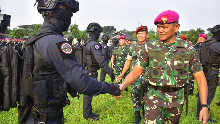 Cakra101, Jakarta.- Komandan Komando Pembinaan Doktrin, Pendidikan dan Latihan TNI Angkatan Laut (Dankodiklatal) Letjen TNI (Mar) Nur Alamsyah, S.E., M.M. M.Tr (Han). diwakili Wakil Komandan Korps Marinir (Wadan Kormar) Brigjen TNI (Mar) Suherlan secara resmi menutup Kursus Penanggulangan Teror Aspek Laut (PTAL) Angkatan 17 TA. 2023 di Lapangan Apel Kesatrian Marinir Arthur Solang, Detasemen Jalamangkara (Denjaka), Jakarta Selatan, Selasa (18/06/2024).