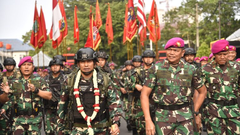 Cakra101, Jakarta.- Wakil Komandan Korps Marinir (Wadan Kormar) Brigadir Jenderal TNI (Mar) Suherlan didampingi Wakil Ketua Gabungan Jalasenastri Korps Marinir Ny. Uni Suherlan bersama Inspektorat Korps Marinir (Irkormar) Brigadir Jenderal Try Subandiyana, S.H., didampingi Ketua Cabang 1 Gabungan Jalasenastri Korps Marinir Ny. Jeane Try Subandiyana, menyambut kedatangan personel Satgas Pamtas RI-PNG Mobile Korps Marinir Gobang 1 TA 2023 di Kesatrian Marinir Hartono Cilandak, Jakarta Selatan, Sabtu (22/06/2024).