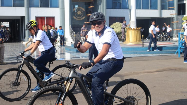 Cakra101, Surabaya.- Komandan Korps Marinir (Dankormar) Mayjen TNI (Mar) Endi Supardi, S.E., M.M., M.Tr. Opsla., CHRMP., CRMP., diwakili Wakil Komandan Korps Marinir (Wadan Kormar) Brigjen TNI (Mar) Suherlan mendampingi Kepala Staf Angkatan Laut (Kasal) Laksamana TNI Dr. Muhammad Ali, S.E., M.M., M.Tr.Opsla., beserta Ketua Umum Jalasenastri Ny. Fera Muhammad Ali, melaksanakan olah raga bersama di Dermaga Madura Koarmada II, Ujung, Surabaya. Jum’at (28/06/2024).