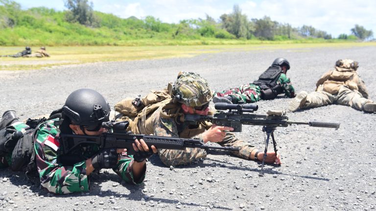 Cakra101, Hawaii.- Prajurit Korps Marinir TNI Angkatan Laut yang tergabung dalam Satgas Latihan Bersama (Latma) Multilateral Rim of The Pacific (Rimpac) tahun 2024 bersama United States Marine Corps (USMC) melaksanakan latihan Patroli Hutan bertempat di Marine Corps Training Area Bellows (MCTAB) Hawaii Honolulu Amerika Serikat. Sabtu (29/06/2024).