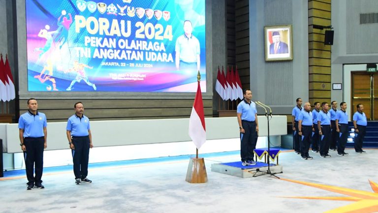 Cakra101, Cilangkap.- Kepala Staf Angkatan Udara (Kasau) Marsekal TNI M. Tonny Harjono, S.E., M.M., membuka Pekan Olahraga TNI Angkatan Udara (Porau) 2024, di Auditorium Denma Mabesau, Cilangkap, Jakarta Timur, Senin (22/7/2024).