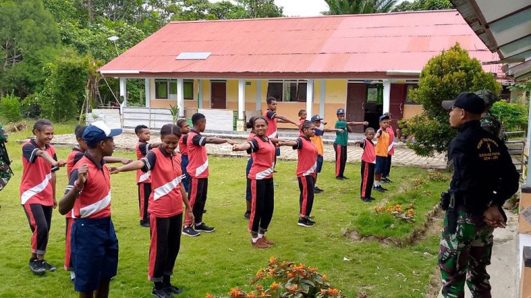Cakra101, Maybrat.- Pembentukan karakter dan penanaman disiplin sejak dini kepada generasi muda di wilayah penugasan di sektor Papua Barat Daya dilakukan Satgas Pamtas RI-PNG Kewilayahan Papua Barat Daya Yonif 762/VYS Pos Suswa dengan melatihkan Peraturan Baris Berbaris (PBB) Kepada siswa SMP 1 Mare, Kampung Suswa, Distrik Mare, Kabupaten Maybrat, Papua Barat Daya. Hal tersebut disampaikan Dansatgas Yonif 762/VYS Letkol Inf Dwi Haryanto,S.Hub.Int.,M.H.I dalam rilis tertulisnya di Distrik Aifat, Kabupaten Maybrat, Papua Barat Daya. Minggu (28/07/2024)