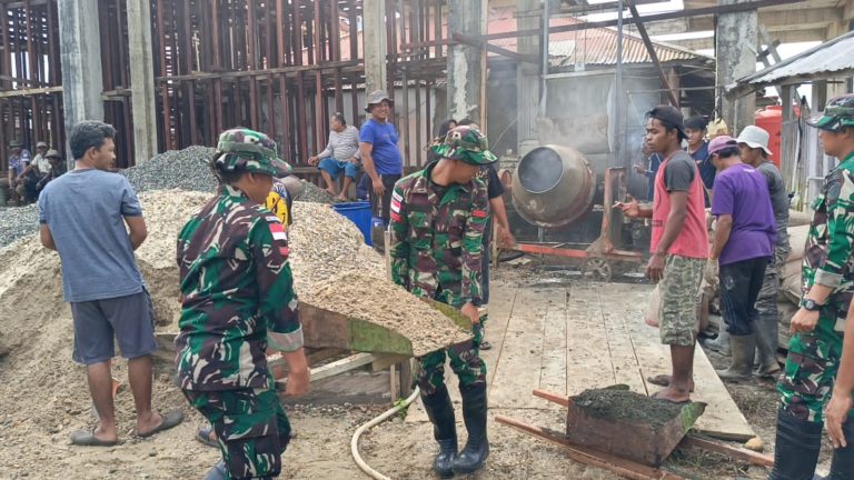Cakra101, Teluk Bintuni, Papua.- Lettu Inf Ryan Hidayat, S.Tr.(Han) memimpin personil Pos Kotis Meyado satgas pamtas RI-PNG kewilayahan Papua Barat Ikut serta membangun Masjid Al-Muhajirin Stengkool III kampung Vascodameen, Distrik Meyado Kabupaten Teluk Bintuni, Provinsi Papua Barat, Senin (12/08/2024).