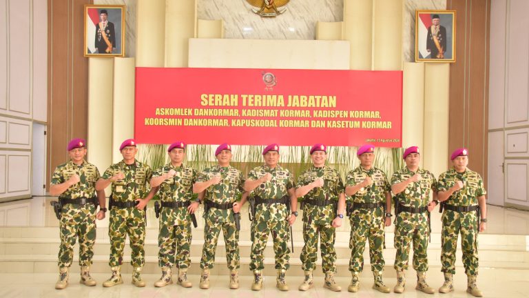 Dispen Kormar, TNI Angkatan Laut (Dispen Kormar). Komandan Korps Marinir (Dankormar) Mayor Jenderal TNI (Mar) Endi Supardi, S.E., M.M., M.Tr.Opsla., CHRMP., CRMP. memimpin Serah Terima enam Jabatan Strategis Korps Marinir yaitu Asisten Komunikasi dan Elektronika Komandan Korps Marinir (Askomlek Dankormar), Kepala Dinas Material Korps Marinir (Kadismat Kormar), Kepala Dinas Penerangan Korps Marinir (Kadispen Kormar), Koordinator Staf Administrasi Komandan Korps Marinir (Koorsmin Dankormar), Kepala Pusat Komando dan Pengendalian Korps Marinir (Kapuskodal Kormar) serta Kepala Sekretariat Umum Korps Marinir (Kasetum Kormar) yang dilaksanakan di Gedung Graha Marinir Markas Komando Korps Marinir, Jalan Prajurit KKO Usman Dan Harun no. 40 Kwitang Jakarta Pusat, Kamis (15/08/2024).