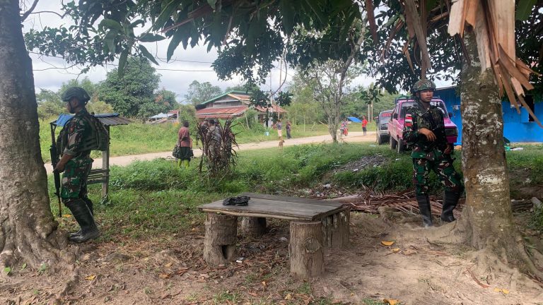 Cakra101, Teluk Bintuni.- Letda Inf Yudi Indra Pratama memimpin personil pos Aroba satgas pamtas RI-PNG kewilayahah papua barat bersama masyarakat melaksanakan karya bhakti membersihkan jalan di Kampung Aroba (15/08/2024 ).