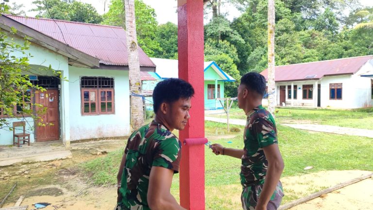 Cakra101, Sorsel.- Satgas Pamtas RI-PNG Kewilayahan Papua Barat Daya Yonif 762/VYS Pos Johsiro yang dipimpin Dantimpur 3 Pos Johsiro Serda Eka Bayu Firmansyah beserta 9 anggota lainnya bergotong royong melaksanakan kegiatan melanjutkan pengecatan SD Inpres 116 Johsiro di Kampung Johsiro, Distrik Moswaren, Kabupaten Sorsel, Selasa (20/08).
