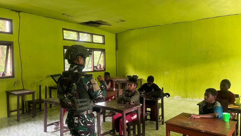 Cakra101, Teluk Kaimana.-Teluk Kaimana – Pos Teluk Etna Satgas Pamtas RI-PNG Kewilayahan Papua Barat Yonif 642 6 orang personil pos Teluk Etna DPP Serda Rizki Aprianto menyalurkan ilmu pengetahuan dan wawasan kepada murid SDN kiruru Distrik Teluk Etna Kabupaten Teluk Kaimana Provinsi PapuaBarat. (14/10/2024).