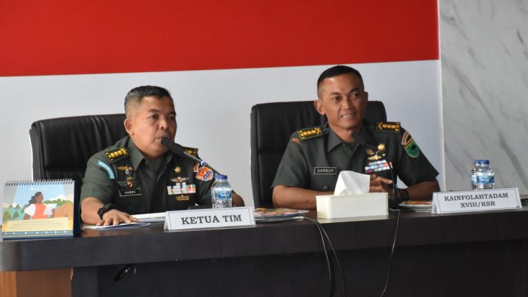 Dalam kesempatan ini, Tim Wasgiat didampingi Kainfolahtadam XVIII/Kasuari bersama Stafnya melaksanakan pemeriksaan lima komponen Sisfo di Staf Umum Makodam.