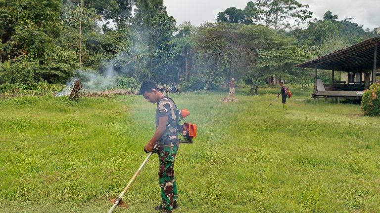 Cakra101, Teluk Wondama.- Satgas yonif 642/kps bersama masyarakat Naikere melaksanakan kegiatan karya bakti membersihkan lingkungan gereja di Kampung Naikere, Distrik Naikere, Kabupaten Teluk Wondama, Provinsi Papua Barat (26/10/2024).