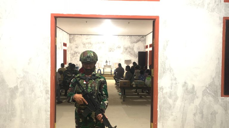 Untuk menciptakan rasa aman dalam pelaksanaan Ibadah di wilayah penugasan, personel Pos Teluk Arguni Satgas Pamtas Kewilayahan Yonif 642/KPS dipimpin Wadanpos Sertu Sandy Alexandro melakukan pengamanan serta mengikuti ibadah penutupan doa Rosario di gereja Katholik Santo Petrus di Kampung Bofuwer, Distrik Teluk Arguni, Kabupaten Kaimana, Papua Barat. Kamis, (31/10/2024).