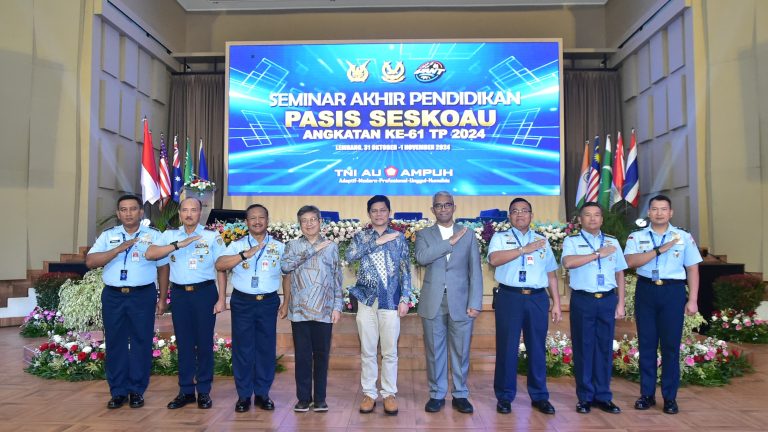 Cakra101, Lembang.- Sekolah Staf dan Komando Angkatan Udara (Seskoau) menggelar Seminar Akhir Pendidikan (SAP) Perwira Siswa (Pasis) Seskoau Angkatan ke-61 Tahun Ajaran 2024 di Gedung Graha Widya Dirgantara, Bandung, Kamis (31/10/2024). Seminar dibuka oleh Komandan Seskoau, Marsda TNI I Made Susila Adnyana, dengan mengusung tema “Artificial Intelligence, Tantangan dan Peluang Pemanfaatannya di Bidang Pertahanan.”