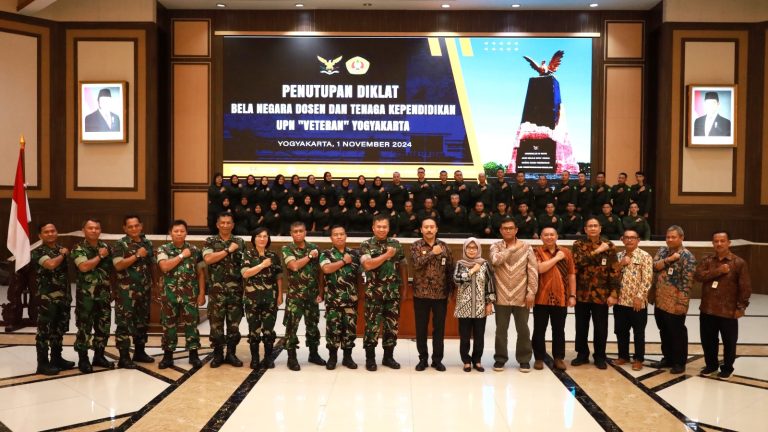 Cakra101, Yogyakarta.- Sebanyak 46 dosen dan tenaga kependidikan Universitas Pembangunan Nasional “Veteran” Yogyakarta telah mengikuti Pendidikan dan Pelatihan (Diklat) Bela Negara yang diselenggarakan di Akademi Angkatan Udara (AAU) Yogyakarta. Diklat berlangsung selama lima hari dari tanggal 28 Oktober hingga 1 November 2024. Tujuan diselenggakannya kegiatan tersebut untuk membangun jiwa yang disiplin, tangguh, dan meningkatkan semangat nasionalisme di kalangan peserta.