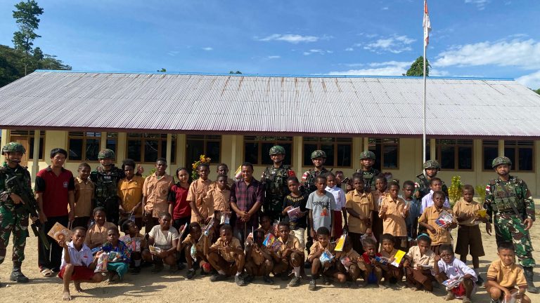Cakra101, Kaimana.- Dalam meningkatkan dan mendukung kualitas belajar anak-anak di tempat bertugas, Pos Yamor Satgas Pamtas Kewilayahan Yonif 642/Kapuas melaksanakan kegiatan pemberian sargal berupa alat tulis, buku serta pemberian snack untuk siswa siswi SD 01 Ururu di Distrik Yamor, Kabupaten Kaimana, Papua Barat. (4/11/2024).