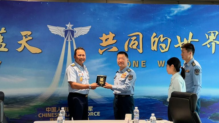 Cakra101, Zhuhai.- Kepala Staf Angkatan Udara (Kasau) Marsekal TNI M. Tonny Harjono, S.E., M.M. melakukan Courtesy Call dengan Commander of The People’s Liberation Army Air Force (PLAAF) General Chang Dingqiu di Hotel Crown, Zhuhai, Rabu (13/11/2024).