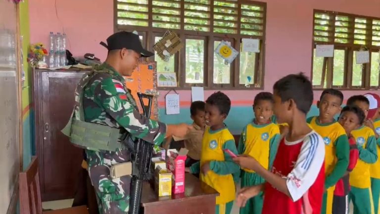 Cakra101, Fak Fak.- Pos Tomage Satgas Pamtas RI-PNG Kewilayan Papua Barat Yonif 642/Kapuas DPP Serda Joni Iskandar melaksanakan mengajar Wawasan kebangsaan Dan Penjumlahan kepada murid SD Inpres 1 Bomberay Kampung Wammar, Distrik Tomage, Kabupaten Fak-Fak Provinsi Papua Barat. (15/11/2024).