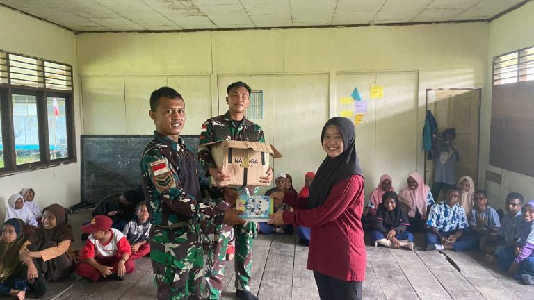 Cakra101, Sorsel.- Satgas Pamtas RI-PNG Kewilayahan Papua Barat Daya Yonif 762/VYS Pos Kokoda meningkatkan motivasi belajar para generasi muda di Papua Barat Daya, membagikan makan serta Buku Tulis kepada siswa dan siswi di 2 Sekolah tepatnya di MIN (Madrasah Ibtidaiyah Negeri) 1 Kokoda dan MTs (Madrasah Tsanawiyah) Yamueti Kokoda yang berolokasi di kampung Tarof, Distrik Kokoda, Kabupaten Maybrat, Papua Barat Daya. (21/11/2024).