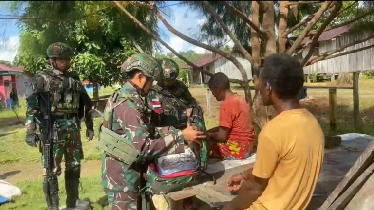 Cakra101, Teluk Bintuni.- Untuk meningkatkan kualitas kesehatan warga yang berada di perbatasan, Satgas Yonif 642/Kps Pos Meyerga bersama Puskesmas Meyerga bekerja sama gelar bakti kesehatan Posyandu dan Posbindu kepada warga Majnic, Distrik Meyerga, Kabupaten Teluk Bintuni, Papua Barat. (21/11/2023).