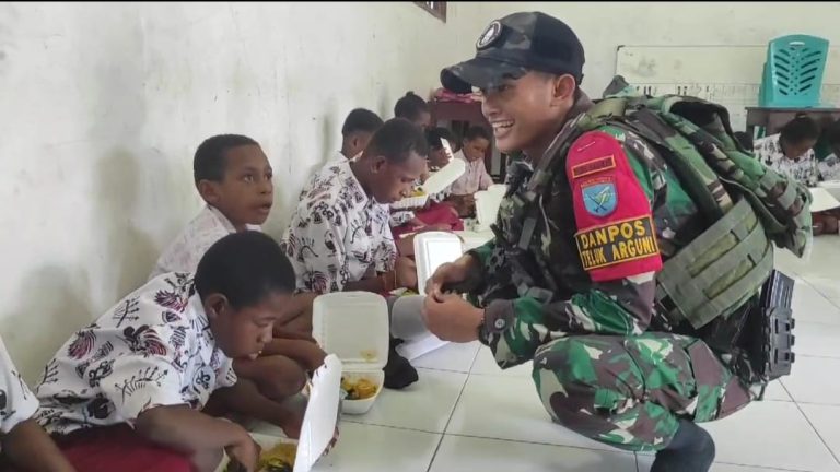 Cakra101, Kaimana.- Sebagai wujud mendukung Program Presiden Prabowo Makan Bergizi Gratis kepada Anak Sekolah, maka Satgas Pamtas Kewilayahan Yonif 642/Kps peduli terhadap pertumbuhan dan kebutuhan gizi anak-anak sekolah di Distrik Teluk Arguni, Kabupaten Kaimana, Kamis, (21/11/2024).