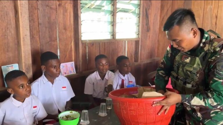 Cakra101, Teluk Bintuni.- Sebagai wujud mendukung Program Presiden Prabowo Makan Bergizi Gratis kepada Anak Sekolah, maka Satgas Pamtas Kewilayahan Yonif 642/Kps peduli terhadap pertumbuhan dan kebutuhan gizi anak-anak SDN Inpres Masyeta, Distrik Masyeta, Kabupaten Teluk Bintuni. (23/11/2024).