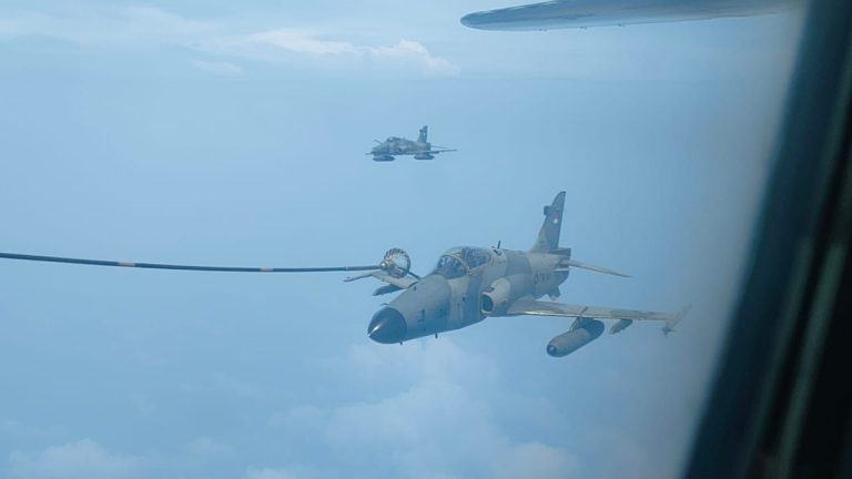 Cakra101, Malang.- Pesawat C-130 Hercules melakukan misi pengisian bahan bakar di udara (Air to Air Refueling) bagi pesawat tempur Hawk 200 dalam rangkaian Manuver Lapangan (Manlap) Latihan Angkasa Yudha 2024, Selasa (26/11/2024).