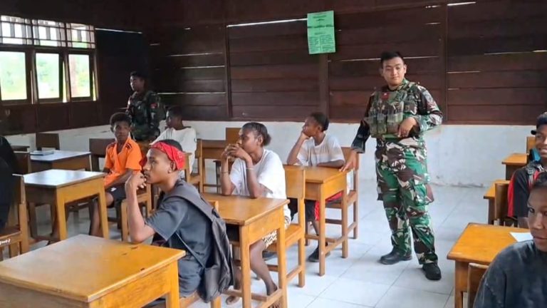 Cakra101, Teluk Bintuni. Satgas Pamtas RI-PNG Kewilayan Papua Barat Yonif 642 Kapuas Pos Aroba mengajarkan apa itu wawasan Kebangsaan kepada murid SMP Aroba Kabupaten Teluk Bintuni Provinsi Papua Barat. (26/11/2024)