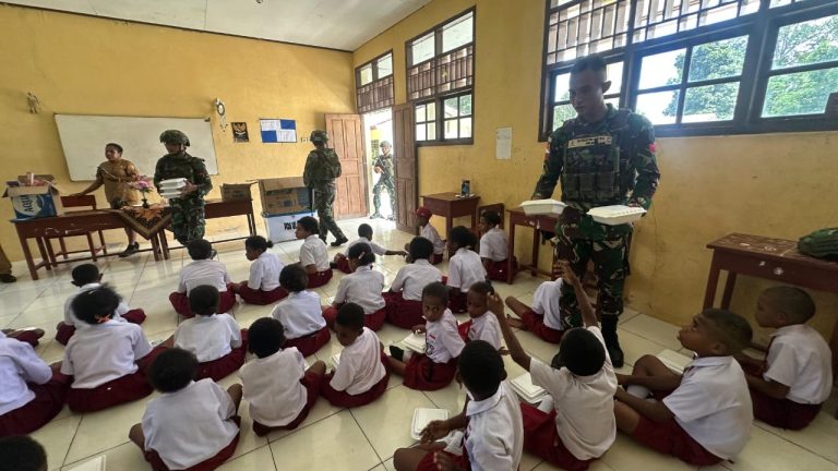 Cakra101, Fak Fak.- Satgas Pamtas Kewilayahan RI-PNG Yonif 642/Kps menggelar kegiatan sosial di SD Inpres Krawargef, dalam kegiatan tersebut, Satgas membagikan makan siang gratis serta alat tulis kepada para siswa SD Inpres Krawargef yang terletak di Distrik Kramomongga, Kabupaten Fak Fak, Provinsi Papua Barat. Langkah ini diambil dengan tujuan untuk meningkatkan semangat belajar anak-anak Papua. (28/11/2024).