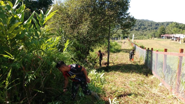 Cakra101, Teluk Bintuni.- Teluk Bintuni – Satgas Pamtas RI-PNG Kewilayahan Papua Barat Yonif 642 Kapuas Pos Mesna membantu warga membuat jalan di Kampung Mesna, Distrik Moskona Timur, Kabupaten Teluk Bintuni, Provinsi Papua Barat. (3/12/2024).