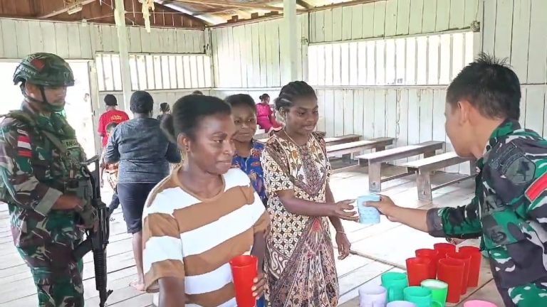 Cakra101, Teluk Bintuni.- Satgas Pamtas Kewilayahan Yonif 642/Kps, Pos Rawara melaksanakan program pemerintah yakni memberikan makan gratis yang dilaksanakan di Kampung Irahima, Distrik Moskona Selatan, Kabupaten Teluk Bintuni, Papua Barat. (10/12/2024).
