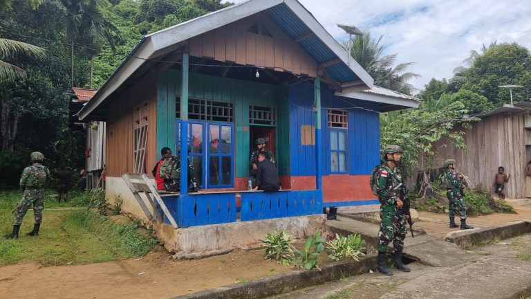 Cakra101, Kaimana.- Satgas Pamtas RI-PNG Kewilayahan Papua Barat Yonif 642/Kps Pos Yamor Desa Ururu, Distrik Yamor, Kabupaten Kaimana, Provinsi Papua Barat melaksanakan anjangsana di Desa Ururu.