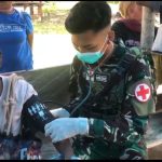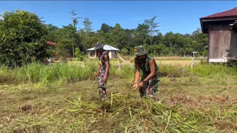 Cakra101, Teluk Bintuni.- Satgas Pamtas Kewilayahan Papua Barat Yonif 642/Kps Pos Meyerga “Lestarikan budaya gotong royong” Pos Meyerga melaksanakan Karya bakti bersama masyarakat membersihkan lingkungan Kampung Mergined, Distrik Moskona Barat, Kabupaten Teluk Bintuni, Papua Barat.