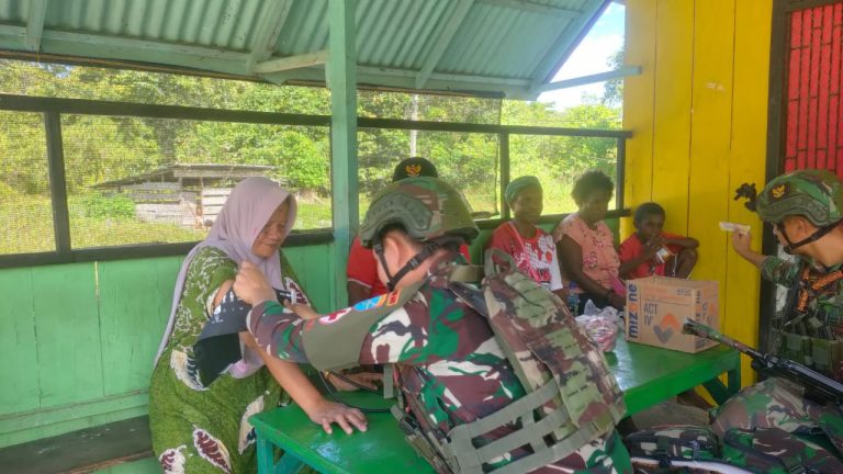Cakra101, Teluk Bintuni.- Sebagai wujud kepedulian terhadap kesehatan warga Kampung Jagiro, Satgas Pamtas RI-PNG Yonif 642/Kps memberikan pelayanan kesehatan (yankes) keliling kepada masyarakat di Kampung Jagiro, Distrik Moskona Selatan, Kabupaten Teluk Bintuni, Papua Barat, Rabu (15/1/2025).
