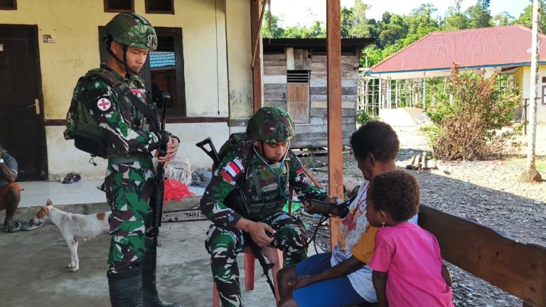 Cakra101, Teluk Bintuni.- Pos Dataran Beimes Satgas Pamtas RI-PNG Yonif 642/Kps Wilayah Papua Barat melaksanakan kegiatan Pelayanan Kesehatan di Kampung Destra Distrik Dataran Beimes, Kabupaten Teluk Bintuni, Provinsi Papua Barat. (20/1/2025).