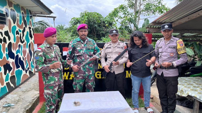 Cakra101, Sebatik Perbatasan Indonesia-Malaysia.- Pada hari Minggu, 9 Maret 2025, Tim Gabungan yang terdiri dari Satgas Marinir Ambalat, Koramil Sebatik Barat, dan Polsek Sebatik Barat berhasil menggagalkan penyelundupan senjata rakitan di Dermaga Penyebrangan Bambangan Kecamatan Sebatik Barat, Kabupaten Nunukan, Kalimantan Utara. Penangkapan ini terjadi antara pukul 11.00 hingga 12.30 WITA, ketika tim yang sedang melaksanakan patroli rutin menemukan sebuah tas yang berisi komponen senjata rakitan, yang diduga berasal dari Negara tetangga. Penemuan ini menunjukkan kewaspadaan dan profesionalisme tinggi dari Tim Gabungan yang menjaga perbatasan NKRI.