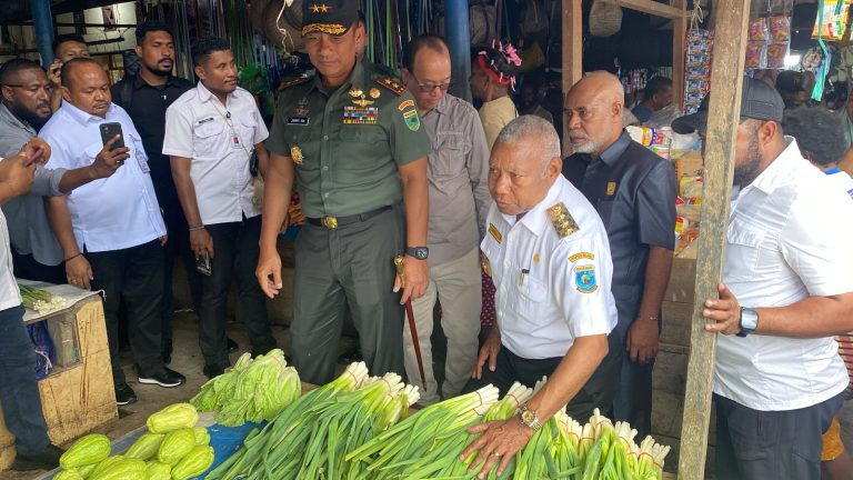 Cakra101, Manokwari.- Menjelang Hari Raya Idul Fitri 1446 Hijriah, Pangdam XVIII/Kasuari bersama Forum Koordinasi Pimpinan Daerah (Forkopimda) Papua Barat melakukan inspeksi mendadak (sidak) ke sejumlah pasar tradisional dan distributor bahan pokok (bapok) di wilayah Manokwari, Rabu (26/3/2025). Sidak ini bertujuan untuk memastikan ketersediaan serta kestabilan harga bahan pokok bagi masyarakat.