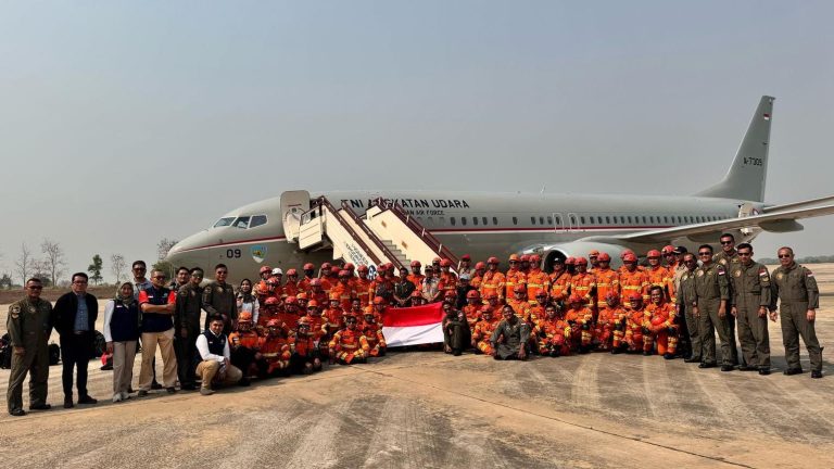 Cakra101, Naypyitaw.- Pesawat Boeing 737-800 TNI Angkatan Udara dengan nomor registrasi A-7309 dari Skadron Udara 17 Lanud Halim Perdanakusuma berhasil mendarat di Bandara Naypyidaw, Myanmar, pada Selasa (1/4/2025) pukul 14.00 waktu setempat. Penerbangan tersebut membawa Tim Indonesian Urban Search and Rescue (INASAR) dari Badan Nasional Pencarian dan Pertolongan (BNPP) dalam rangka misi kemanusiaan.