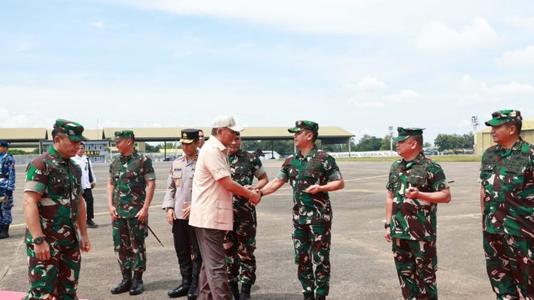 Cakra101, Makassar.- Panglima Komando Operasi Udara II (Pangkoopsud II) Marsda TNI Deni Hasoloan S. menyambut langsung kedatangan Menteri Pertahanan Republik Indonesia Letjen TNI (Purn.) Dr. Sjafrie Sjamsoeddin, M.B.A., di Baseops Lanud Sultan Hasanuddin, Makassar, Jumat (4/4/2025).